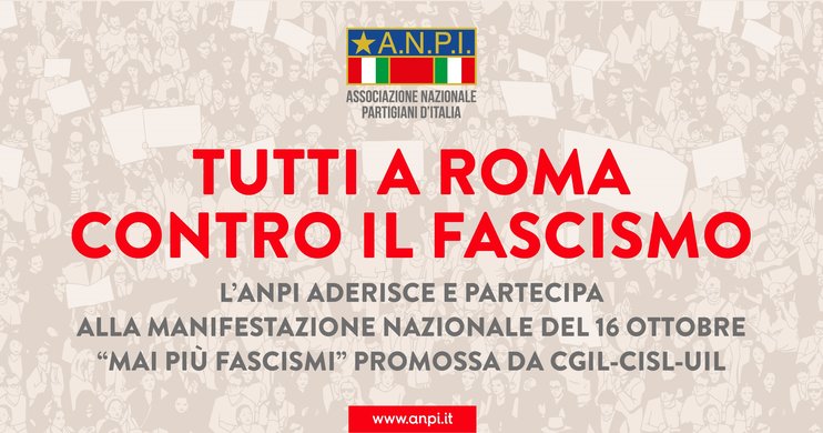 Questo è lo spirito con cui lanciamo un appello al Paese affinché si realizzi la più ampia partecipazione organizzata alla mobilitazione nazionale promossa da CGIL, CISL e Uil per sabato 16 ottobre. Il 25 aprile 1945 il popolo italiano riscattò l’Italia sconfiggendo il nazifascismo. Oggi il popolo italiano saprà respingere qualsiasi tentativo di minare la repubblica democratica e antifascista.