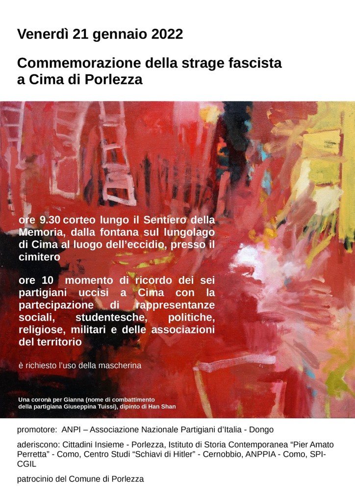 COMMEMORAZIONE DEI MARTIRI DI CIMA Scopri di più da ANPI - Comitato Provinciale di Como ETS Abbonati per ricevere gli ultimi articoli inviati alla tua e-mail. Digita la tua e-mail... Iscriviti Condividi: Condividi su X (Si apre in una nuova finestra) X Condividi su Facebook (Si apre in una nuova finestra) Facebook Mi piace Caricamento... Correlati