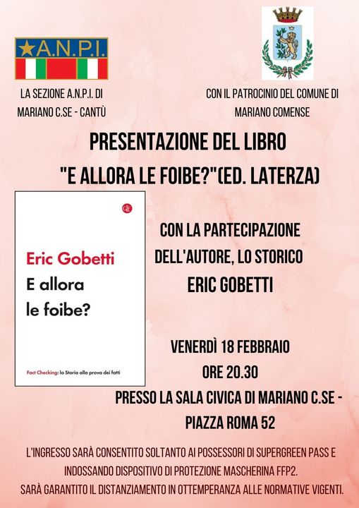 La sezione Anpi di Mariano Comense-Cantù, con il patrocinio del Comune di Mariano Comense, organizza un incontro con lo storico Eric Gobetti per capire le ragioni che spinsero le popolazioni del confine italo-sloveno a fronteggiarsi in modo spietato durante e dopo la seconda guerra mondiale.