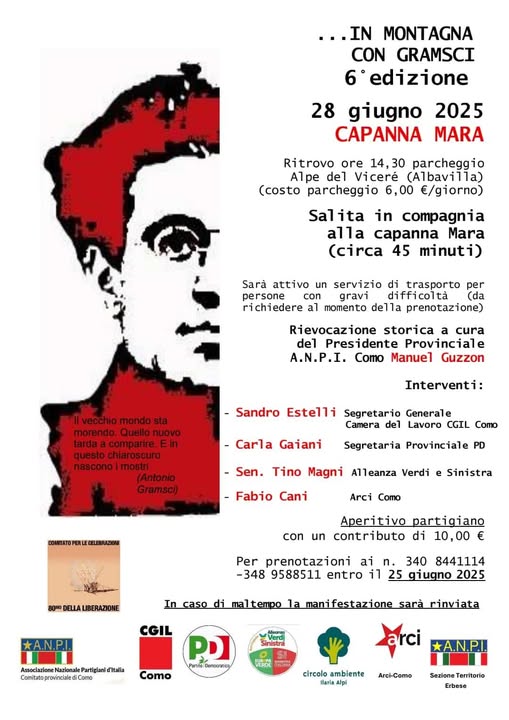 Torna, per il sesto anno consecutivo, la passeggiata partigiana alla capanna Mara “In montagna con Gramsci”.