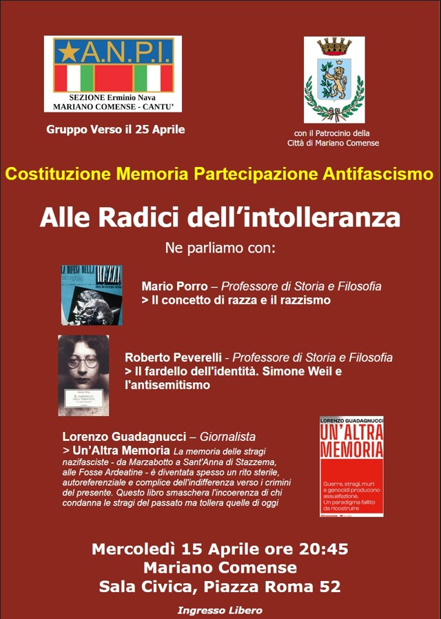 Dialogo su razzismo e intolleranza, con i professori Mario Porro e Roberto Peverelli e lo scrittore Lorenzo Guadagnucci.