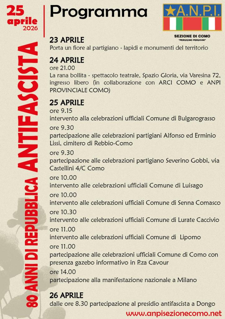 PROGRAMMA PER LA CELEBRAZIONE DEL 25 APRILE DELLA SEZIONE ANPI DI COMO Scopri di più da ANPI - Comitato Provinciale di Como ETS Abbonati per ricevere gli ultimi articoli inviati alla tua e-mail. Digita la tua e-mail... Iscriviti Condividi: Condividi su X (Si apre in una nuova finestra) X Condividi su Facebook (Si apre in una nuova finestra) Facebook Mi piace Caricamento... Correlati