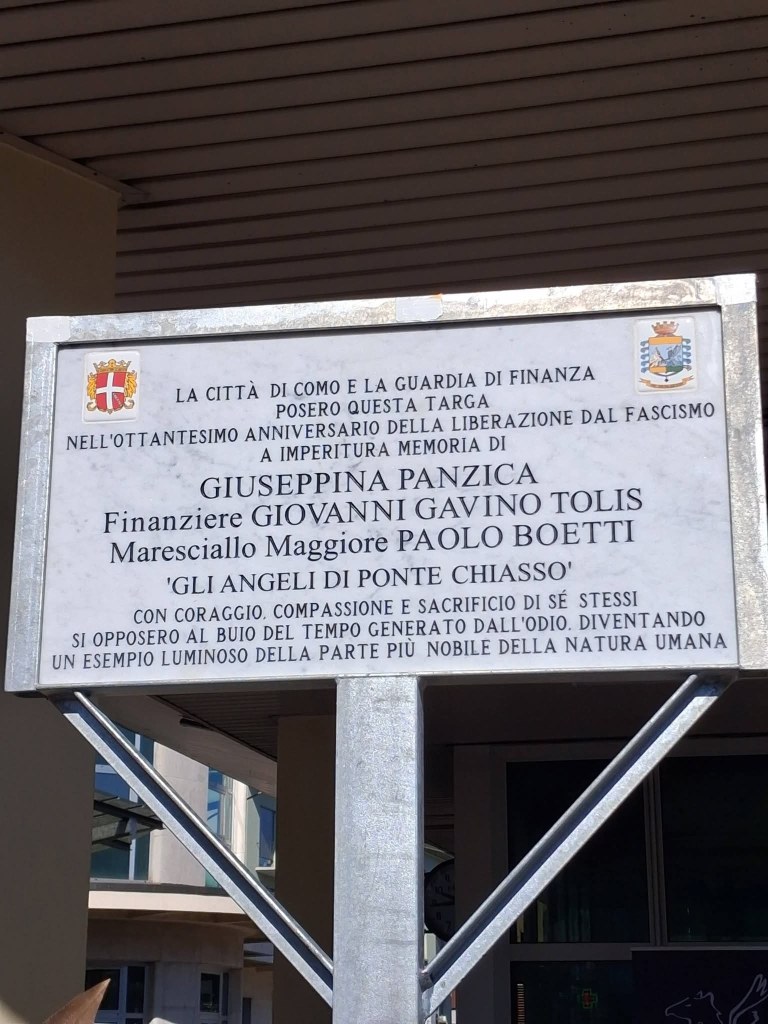 Questa mattina, alle ore 9,30 alla presenza delle autorità, del corpo della Guardia di Finanza, delle associazioni d’arma e dell’ ANPI è stata svelata una targa posta sull’edificio della Dogana di PonteChiasso, che ricorda il coraggio del finanziere Gavino Tolis che, con l’ aiuto della signora Giuseppina Panzica si incaricava di far espatriare profughi ebrei e perseguitati politici attraverso un buco della rete nel giardino della signora Panzica che dava sul confine svizzero. In seguito a una delazione vennero scoperti e deportati nei campi di concentramento da dove Gavino Tolis, di soli 25 anni, non farà più ritorno. Insieme a Tolis e Panzica è stato ricordato anche il Mareciallo Capo della guardia di Finanza Paolo Boetti, Comandante Interinale della Tenenza di Torriggia, che aveva il compito di vigilare la frontiera del Bugone di Moltrasio, nei pressi del Monte Bisbino, e le frontiere Murelli e Binate. In accordo con i partigiani operanti nella zona, i finanzieri al comando di Boetti aiutarono ex prigionieri di guerra, gruppi di ebrei e giovani disertori del Regio Esercito a fuggire in Svizzera. Quando i tedeschi occuparono il Comasco e i valichi di frontiera, il Maresciallo Boetti aderì alla Resistenza, entrando a far parte del gruppo delle Fiamme Verdi.