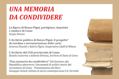 ore 11.45 – Presentazione dell’archivio di Renzo Pigni: verrà illustrato il meticoloso lavoro di riordino dell’archivio storico di Renzo Pigni, figura emblematica della politica locale, noto per il suo ruolo di partigiano, deputato e sindaco di Como. Un’occasione per riscoprire la vita e l’operato di un protagonista della storia cittadina.