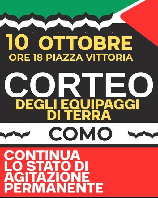 Domani sera alle 18 partirà un corteo in appoggio agli equipaggi della Sumud Flottilla ancora imprigionati. Massima solidarietà a chi si è messo in gioco per portare aiuto alla popolazione palestinese stremata! Basta barbarie!