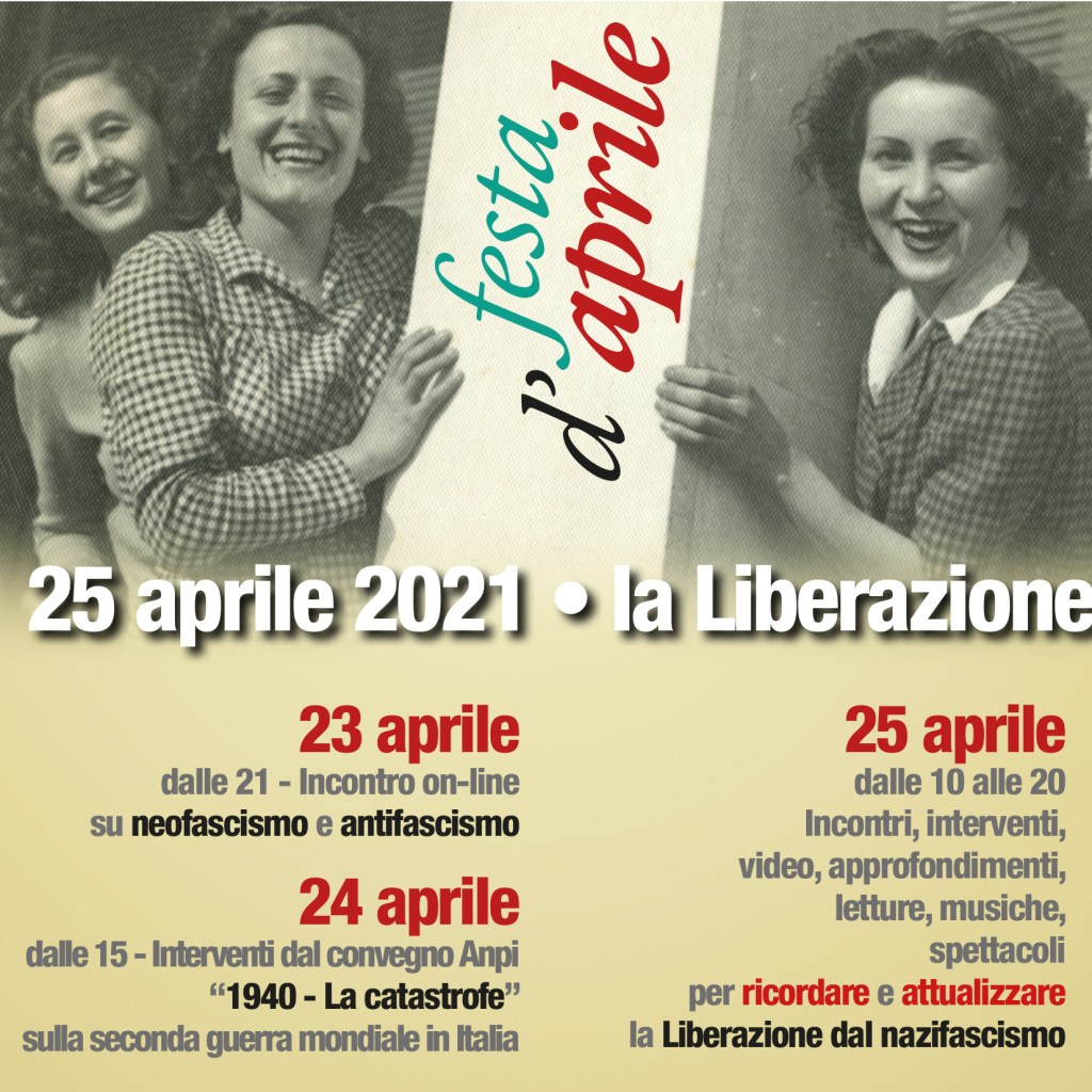 3) “Staffetta della Liberazione”: sulla pagina Facebook Associazione Nazionale Partigiani d’Italia – ANPI dalle 10:15 alle 18 del 25 aprile diretta con collegamenti esterni, letture, musica, incontri, presentazioni di libri, testimonianze partigiane. Hanno già aderito e dunque parteciperanno tra gli altri: Dacia Maraini, Giuliano Montaldo, Eugenio Finardi, Laura Gnocchi, Gad Lerner, Francesco Filippi, Chiara Colombini, Marta Cuscunà. Nei prossimi giorni sarà reso pubblico il programma completo.