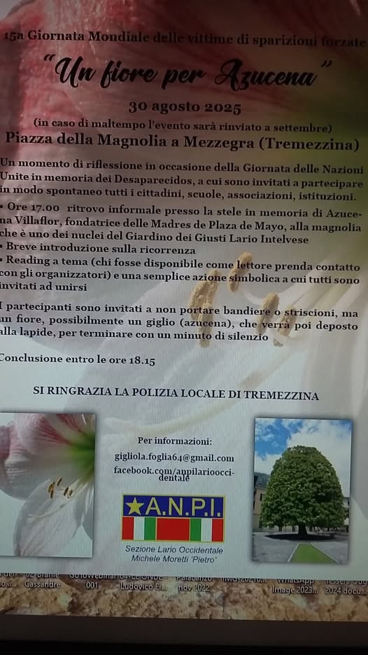 Sez. ANPI Lario Occidentale propone un momento di riflessione in occasione della Giornata Mondiale indetta dalle Nazioni Unite in memoria dei Desaparecidos.