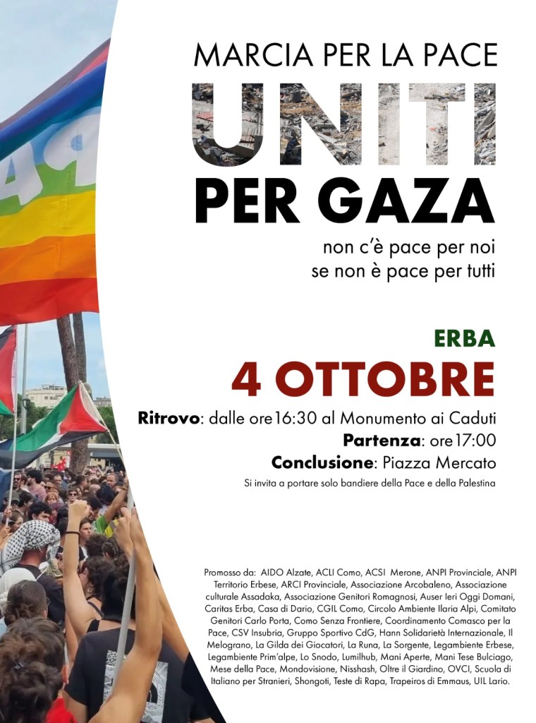 Cari compagni e amici, è stato commesso un errore : il luogo di ritrovo della marcia della Pace a Erba è il monumento ai caduti e non la piazza del mercato. Vi aspettiamo!