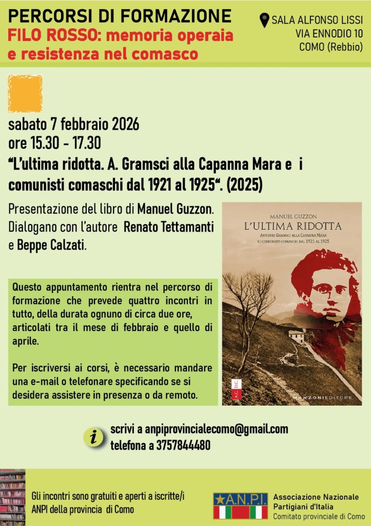 Prime adesioni: Anpi, Arci, Attivisti di Como, Gc, Cgil, M5s, Osservatorio democratico sulle nuove destre Como e Provincia, Prc, Rete Como senza frontiere, Si, Trapeiros di Emmaus Erba, Ugs