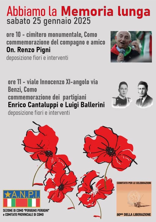 Ricordo del compagno on. Renzo Pigni e Commemorazione dei partigiani Ballerini e Cantaluppi.