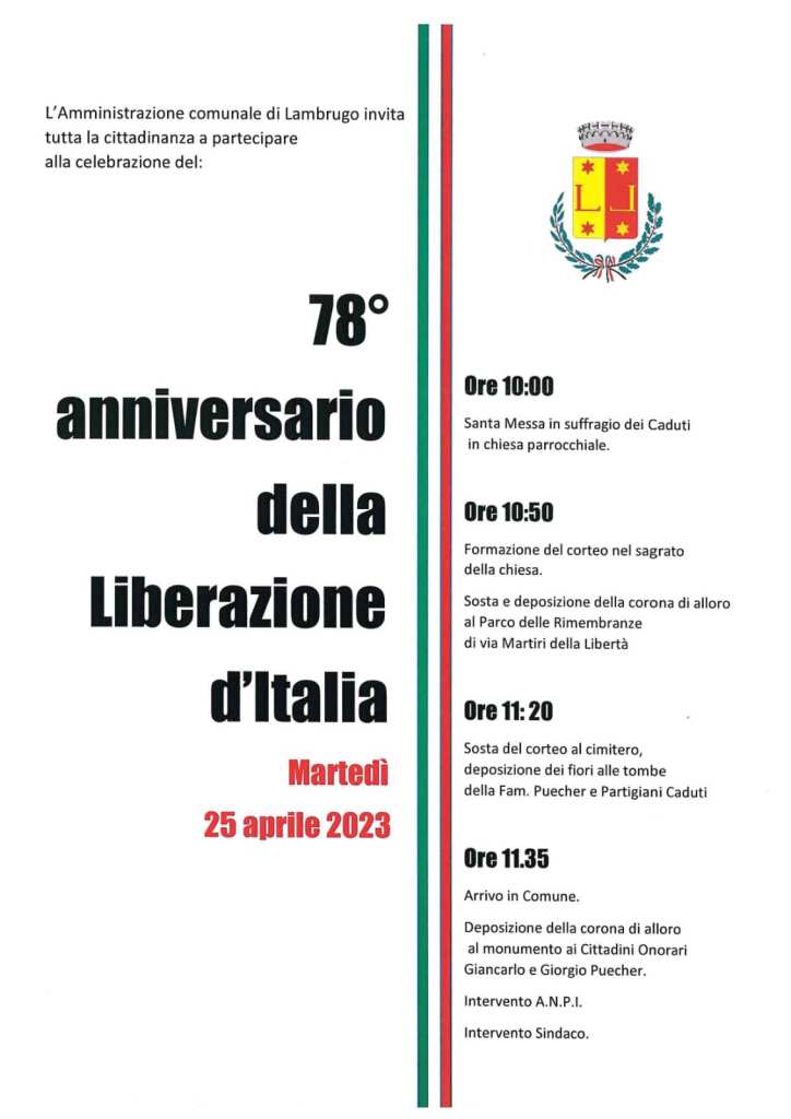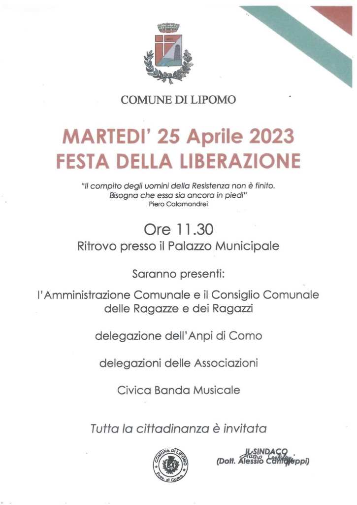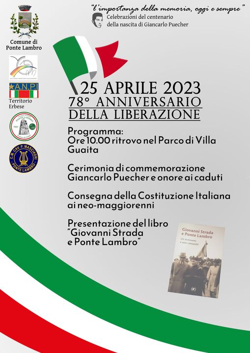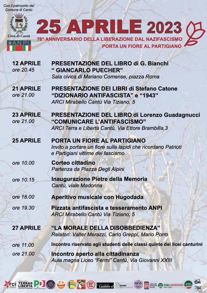 ore 11,00 cerimonia presso il Monumento alla Resistenza Europea ai giardini a lago, con deposizione delle corone e interventi delle Autorità e del rappresentante A.N.P.I., che quest’anno sarà Tommaso Fasola, nipote del partigiano Ugo Fasola, recentemente scomparso.