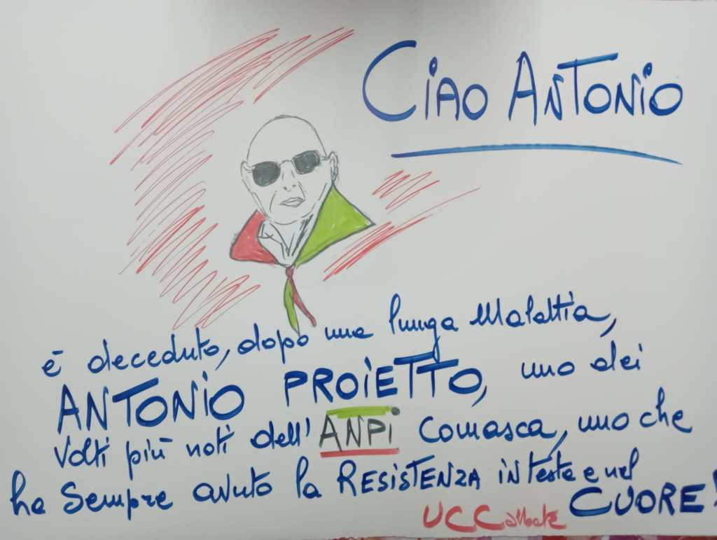 Esprimo anche a nome dell’ Anpi provinciale di Milano profondo cordoglio, affettuosa e commossa vicinanza ai familiari, per la scomparsa di Antonio Proietto, Segretario dell’ Anpi provinciale di Como, per anni organizzatore e promotore di importanti iniziative della nostra Associazione.